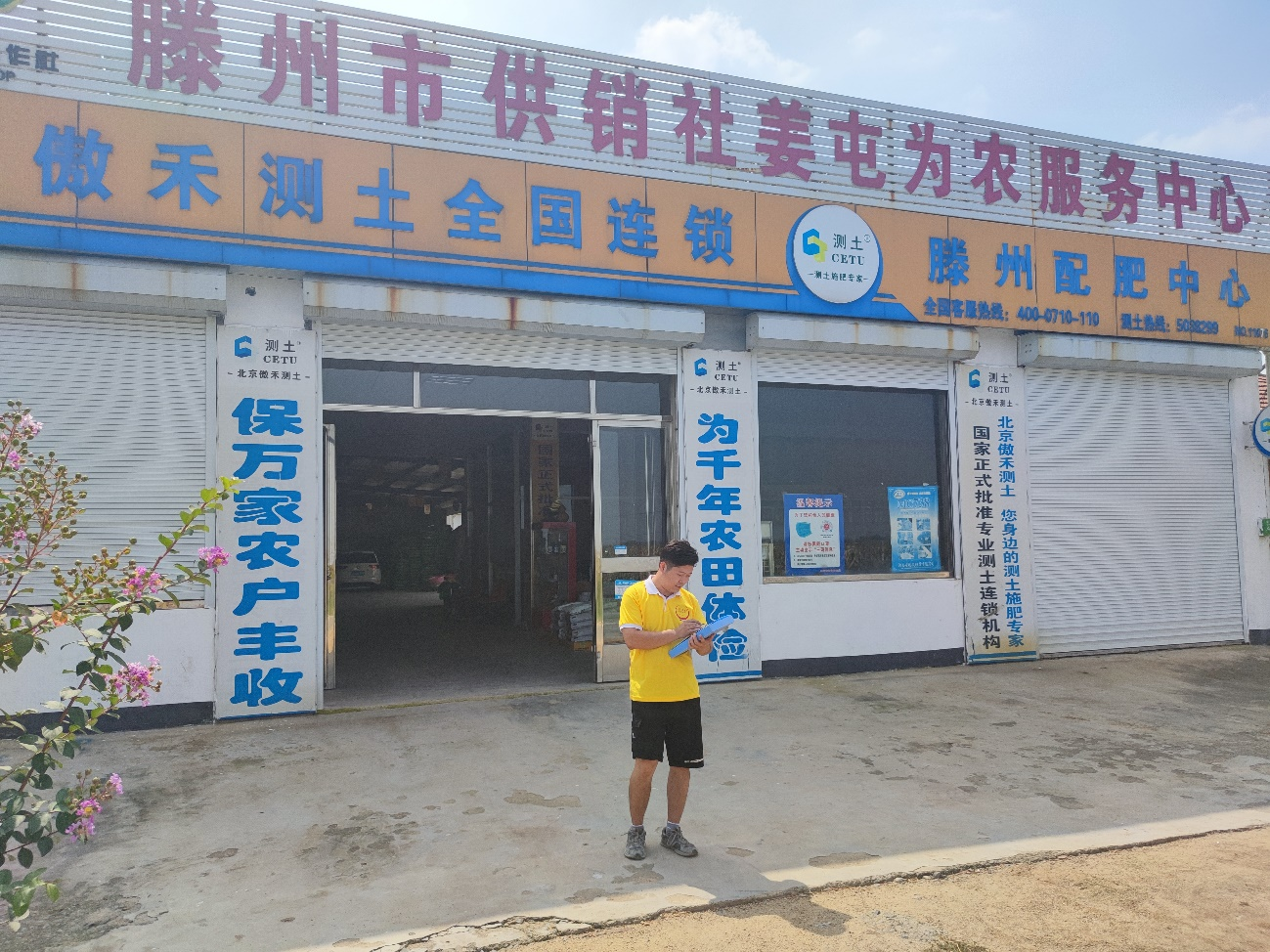 滕州市姜屯为农服务中心于2015年12月建成,占地面积10亩,建筑面积2200平方米。服务中心设有农资直营、智能配肥、土壤化验、农技培训中心等四个部门。购置配肥机一台,今年新增调配新型智能配肥机一台。主要服务有测土配方、智能配肥、农资直供、农民培训、植保服务等。累计化验土样2000余份,配方施肥6000余吨,聘请农技专家培训农民3000余人/次。润康植保专业合作社建设示范田3处,吸纳农民社员516人。成立植物保护专业合作社,引导农民推广良种良方,以先测土后智能配肥的模式,推出了一条减肥增效发展的新路子,累计为农民人均增收500元、服务中心增收8万元。