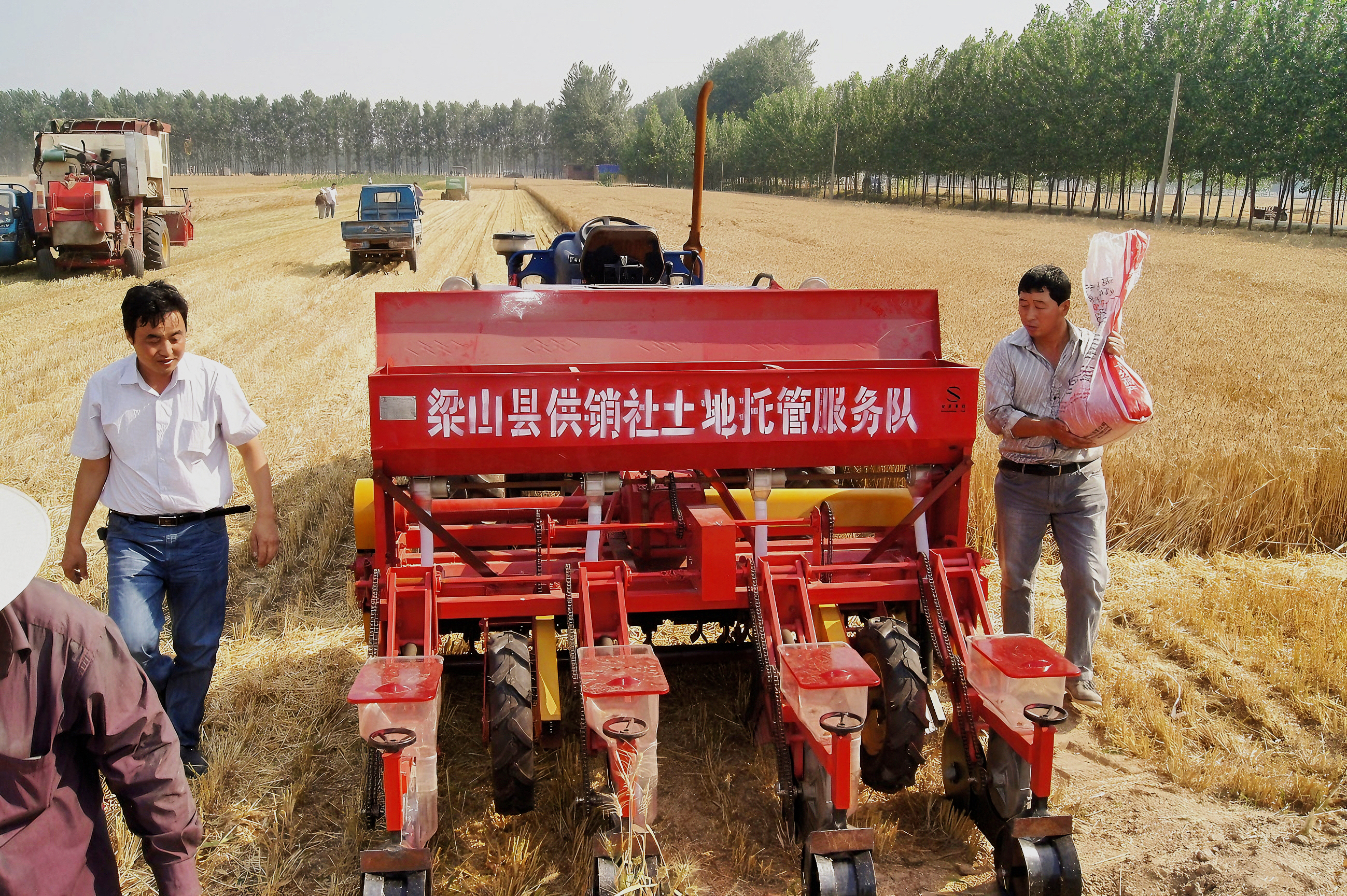 自韩垓为农服务中心建成以来,依托完备的服务功能和高效的市场化运营及抱团发展的强大优势,充分发挥主体引领作用,不断拓宽服务范围、延伸产业链条,积极开展农业社会化服务工作。现已实现年托管服务面积3万余亩(其中全托管服务面积1.3万亩),年飞防作业面积11.2万亩次,组织收割小麦3.8万亩,玉米种肥同播2.2万亩,收购小麦400万公斤,购销大豆860万公斤,为农民推广、提供优质大豆良种13.5万公斤,小麦良种60万公斤,并对种粮大户按每公斤高于市场价格0.2元回收,带动梁山周边县区500多个村庄种植大豆4万余亩,远销两广、云贵等地,并形成了初具规模的大豆交易中心。此外,针对供销社扎根基层、服务“三农”的优势,整合供销社、农业农村部门、农业专家等优势培训资源,积极组织举办各类农民技术培训班,平均每年举办农民培训班12期,受训达3000余人次,切实提升了广大农户的理论水平和服务技能。如今,韩垓为农服务中心大豆经营、大豆和小麦良种繁育业务急剧增加,承接农机、飞防作业量越来越大,为种粮大户、粮食种植专业合作社的环节服务越来越多,专业合作社申请加入联合社或者谋求合作的种植大户越来越多,取得了良好的经济效益和社会效益。