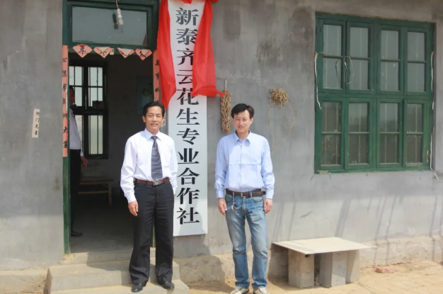 2011年4月,王武善在新泰刘杜镇清河村发起成立了齐云花生专业合作社,由此拉开了“村社共建”的序幕,之后,又陆续在其他乡镇设立标准化示范基地30处,带动农户4000余户。齐云花生专业合作社先后被全国、省、市社评为“合作社示范社”,合作社示范基地被确定为泰安市农科院花生新品种繁育试验基地、山东农业大学花生教学实践基地。在示范基地的带动下,清河村村民人均收入由原来的4000元提高到8000多元,2011年至2017年,村集体收入每年递增20%左右,过去无企业、无经济收入的“空壳”村、后进村,变为全镇经济强村,村级党组织凝聚力显著增强。之后,陆续在北寨村成立“甜红子”山楂专业合作社,在下盐店村成立蔬菜专业合作社,因村施策,一村一社,农民收入和村集体经济均得到大幅提高。