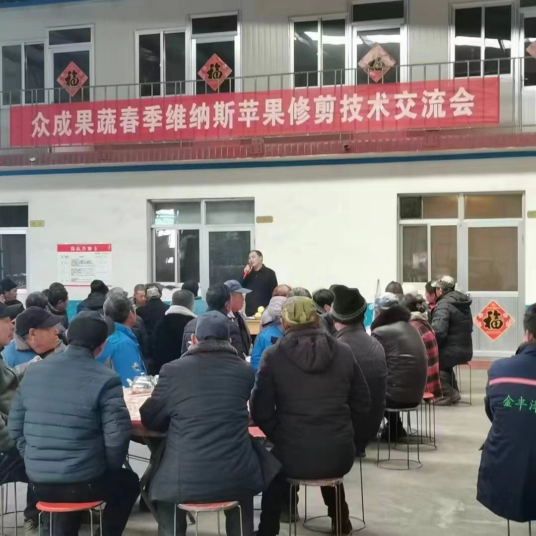 招远市毕郭镇是烟台苹果的主产区之一,是烟台苹果批发交易市场之一。近年来,为了助力乡村产业振兴,实现基层社可持续性发展,郭振林同志在坚持传统骨干业务的同时,积极探索企业发展新路径,在苹果产业高质量发展上做文章,创办了由毕郭供销社持股的烟台众成果蔬种植专业合作社。该合作社以助力乡村振兴、促进农业现代化发展和带动农民增收为根本宗旨,以创建品牌、推进标准化生产和有效组织农民开展生产为工作重点,集果品种植、果品管理技术指导、农资供应、果蔬冷藏、保鲜加工、电子商务于一体,逐步建立起产前、产中、产后一条龙的农产品经营服务体系。先后建设2000吨冷风库和5000吨气调库各1处;流转农村土地1000亩建设水肥一体现代化苹果种植示范基地4处;注册“郭氏美农”“恬果部落”“招红”“招香”“招翠”“招蜜”商标6个,其中“招红”苹果荣获烟台好苹果大赛二等奖,示范带动周边20多个村1500户果农共同发展。先后承担实施“烟台数字果园”“现代苹果标准园”等6个项目,年可助农增收2000万元以上。合作社先后荣获“总社级农民专业合作社示范社”“国家级农民专业合作社示范社”称号。