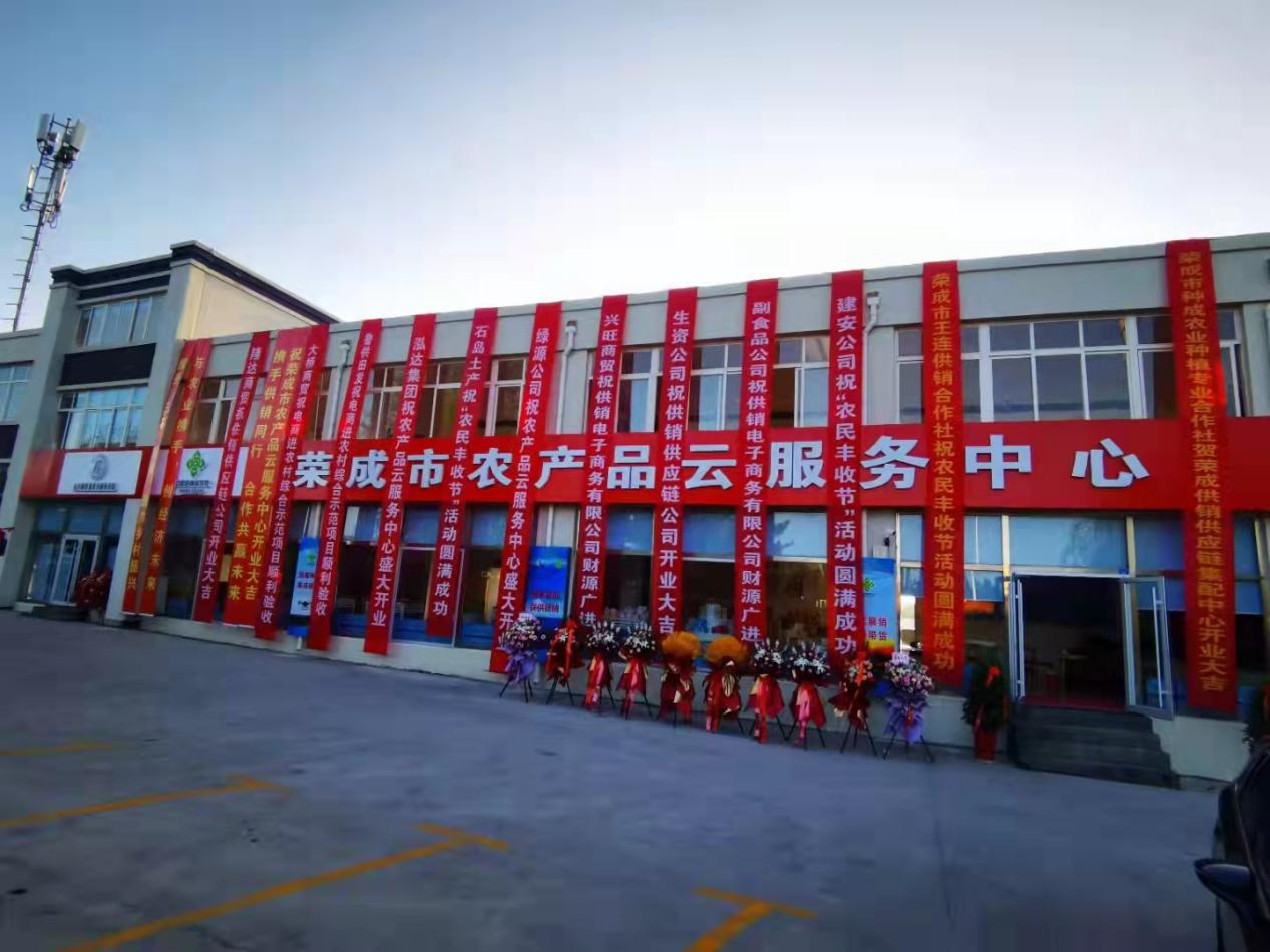 荣成市供销社作为全国电子商务进农村综合示范项目的承建单位之一,紧紧依托该项目物流园区,建设一处1000平方米的农产品云服务中心,成为畅通农产品流通、促进集体增收和农民致富的全新平台,并于2021年9月29日揭牌开业,正式运营。
