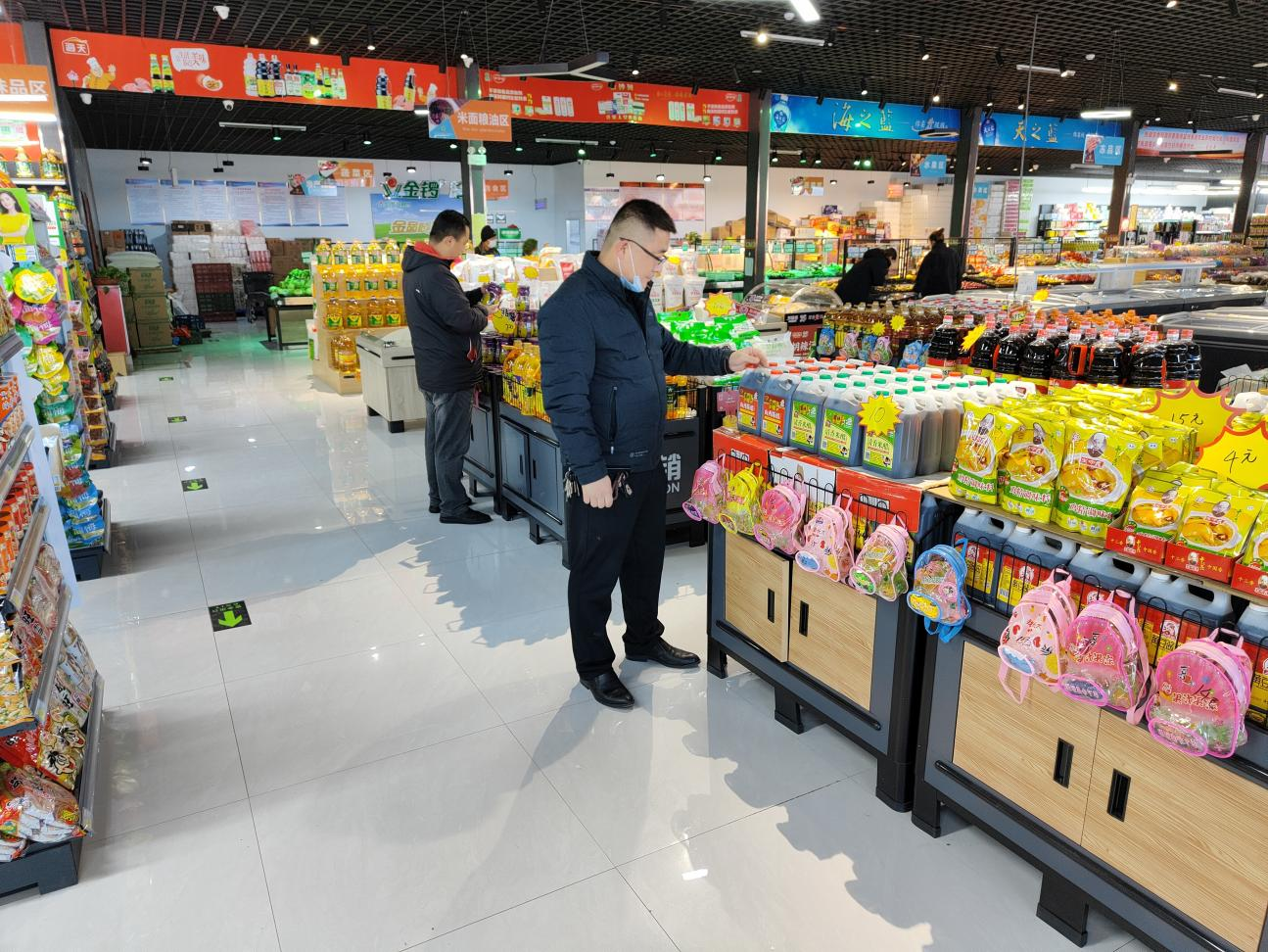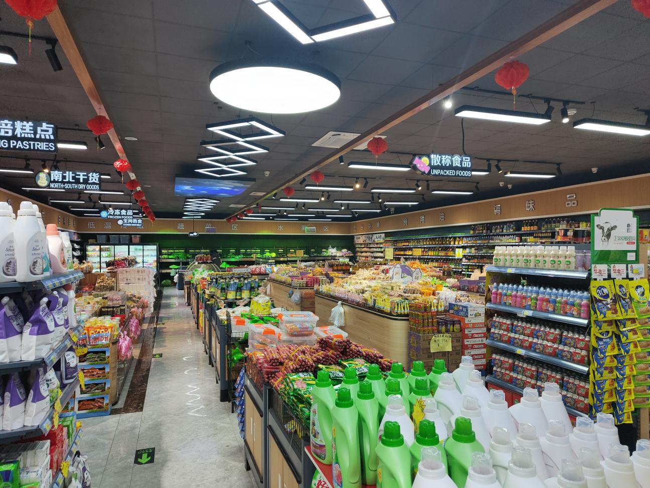 李家店于2020年9月30日开业,占地555平方米(扩建中1700平方米);齐0店于2021年6月27日开业,占地1300余平方米。超市自开业以来深受老百姓欢迎,超市本着为农服务理念,采购一手货源,努力保障人民群众的“菜篮子”“米袋子”,力求让老百姓买的舒心,吃的放心,用的安心。通过考察调研、学习培训等多种方式,丰富营销决策,目前已实现李家店销售470余万元、齐0销售110余万元。同时收购农产品10000余斤,为李家村清洁工发放劳务用品40余份,一定程度上解决了农产品产销对接和民生保供等问题。